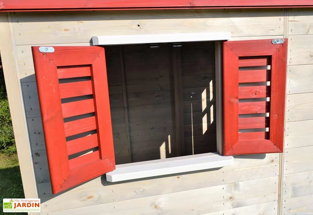 Parfaite pour offrir un espace de jeu en plein air à vos enfants, cette petite maison en bois est conforme à la norme EN 71. Elle vous sera livrée en kit et devra alors être assemblée et installée par vos soins dans votre jardin.