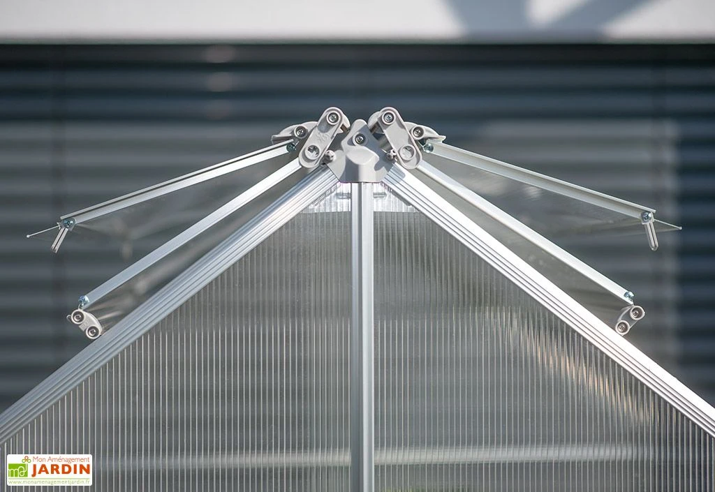 Pour obtenir une bonne circulation de l’air dans la serre, le toit peut être ouvert et verrouillé dans différentes positions.