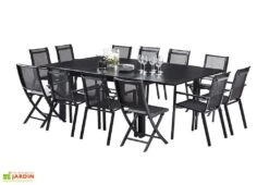 Salon De Jardin BlackSun En Alu Et Verre Trempé : Table + 8 Fauteuils