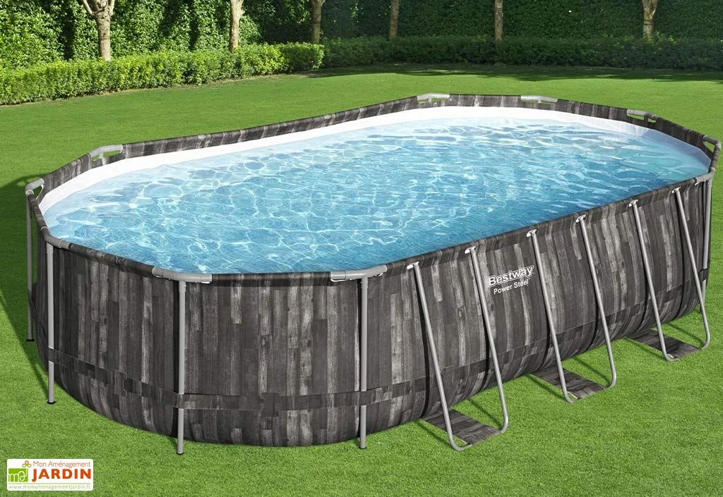 La structure en acier de la piscine possède une finition en thermolaquage ce qui lui vaut de résister à la corrosion. Elle dispose de pieds droits et en forme de U pour une stabilité à toute épreuve. Son liner en PVC de 3 couches est robuste et vous garantit une belle longévité. Son aspect bois aux tonalités grises et noires apporte de la modernité à la piscine mais aussi une neutralité qui lui permet de facilement prendre place dans un jardin.
