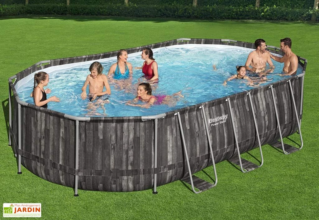 La piscine tubulaire de la marque Mountfield s’étale sur 6,1 x 3,6 m et épouse une forme ovale. Elle possède une capacité totale de 20200 litres dans lesquels toute la famille pourra venir barboter les chaudes journées d’été.