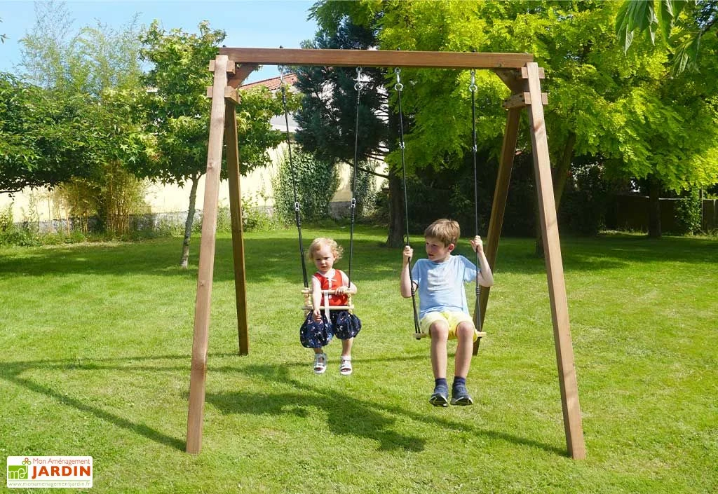 Le portique Ambre de chez Soulet mesure 2,10 x 2,07 x 2,24 m et peut accueillir 2 enfants de 3 à 12 ans sur sa balançoire pouvant supporter 50 kg maximum et son siège pour bébé en bois pouvant supporter 15 kg maximum. Il est éco-friendly et respectueux de l’environnement.