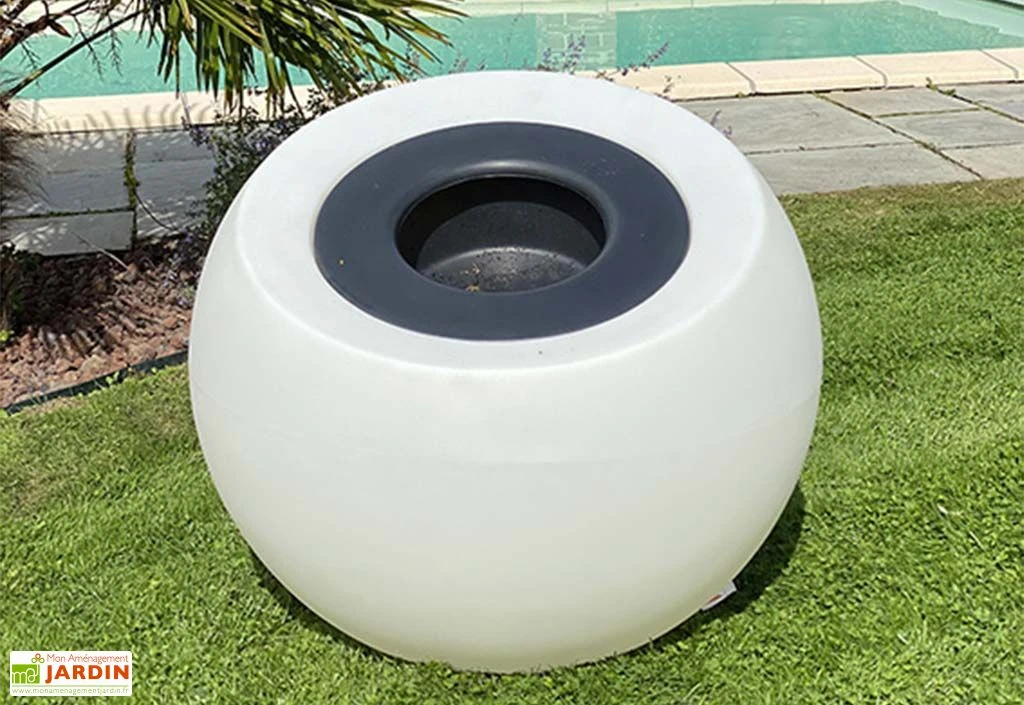 Conçu en polyéthylène rotomoulé transparent, ce pot de fleurs rond de 90 cm de diamètre se montrera particulièrement résistant en cas d’intempéries. Il ne craindra ni les écarts de température importants, ni les rayons UV et ne vous demandera aucun entretien, si ce n’est un nettoyage occasionnel. Son bac amovible de 35 cm de diamètre le rend idéal pour accueillir fleurs et arbustes.