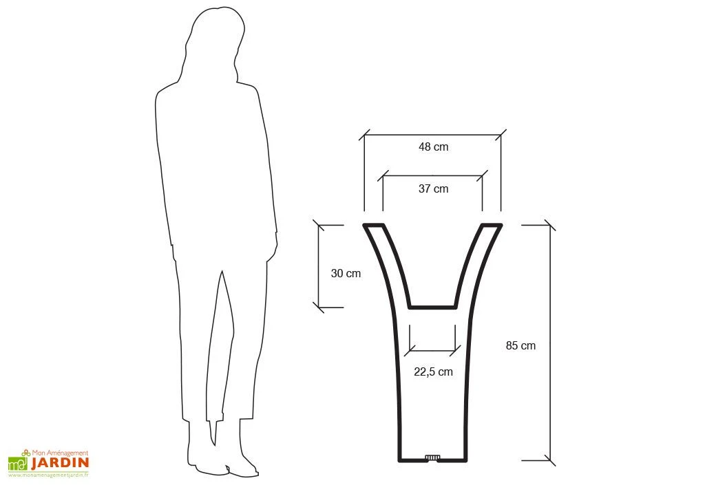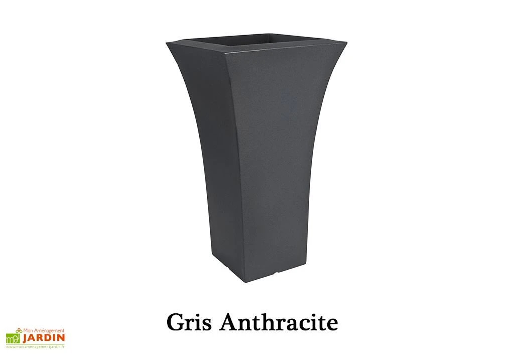 Le pot de fleurs peut rester dehors toute l’année puisqu’il résiste à une température de -80°C à +60°C. Il ne craint pas non plus les chocs. Il mesure 48 cm de côté et 85 cm de hauteur et possède une contenance de 18 litres.