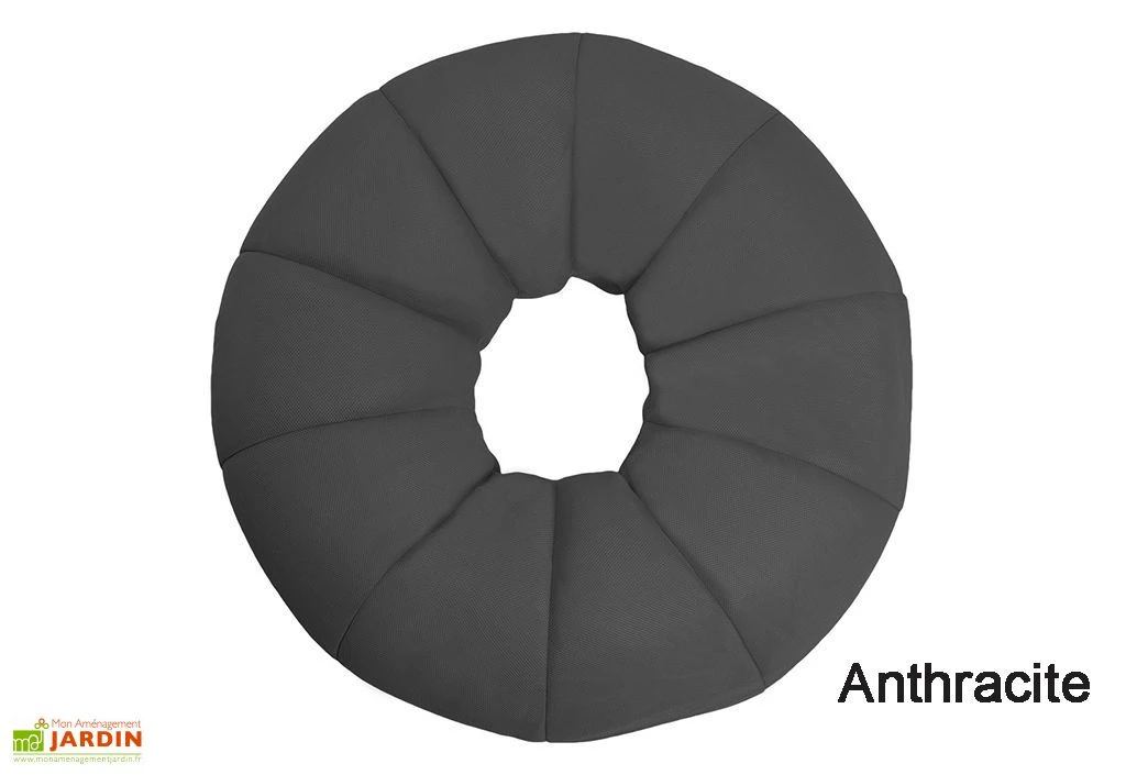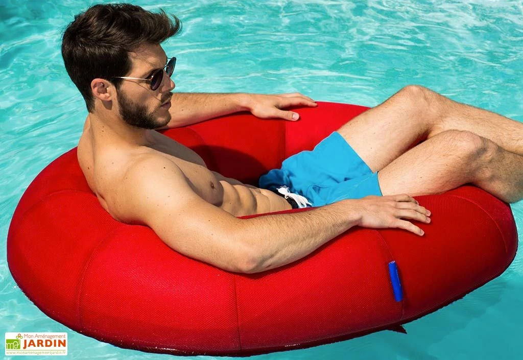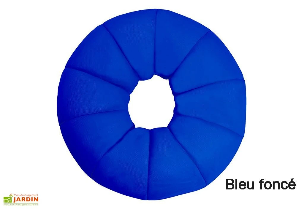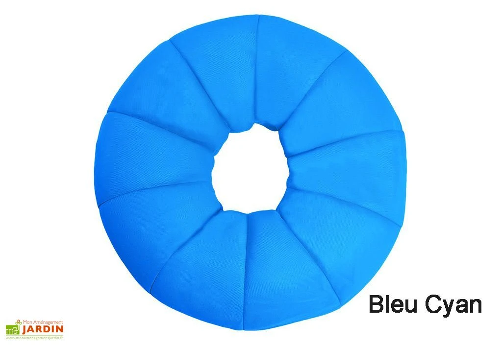 Le pouf géant de chez Jumbo Bag est en forme de bouée. Il mesure 100 cm de longueur, 100 cm de largeur et 35 cm de hauteur. Très confortable grâce à sa forme et les matériaux utilisés, ce pouf s’utilise à l’intérieur, à l’extérieur et même dans la piscine puisqu’il flotte parfaitement. Le pouf de piscine possède une housse en polyester alvéolé, déhoussable et un remplissage en billes de polystyrène vierges de 240L. L’entretien du pouf est simplifié puisqu’il est lavable en machine à 40°.