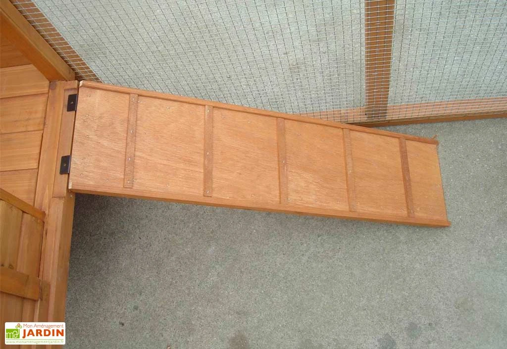 Votre poulailler de chez Habrita est en bois teinté clair et dispose d’un toit bitumé une pente. Ses dimensions au sol sont : 160 x 70 cm (l,l) et hors tout : 198 x 75,5 x 103 cm (l,l,h). Il est livré avec une volière équipée d’une rampe d’accès à l’espace nuit qui est fermé par une porte d’accès. Il dispose également d’un pondoir et de deux perchoirs. Ce poulailler a une capacité de 3-4 poules. Il est sapin certifié FSC d’une épaisseur de 10 mm. Le poulailler est équipé d’un grillage galvanisé avec un maillage de 1 x 1 cm.