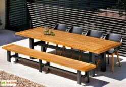 Ensemble Repas De Jardin 6 Personnes En Aluminium, Teck Et Résine