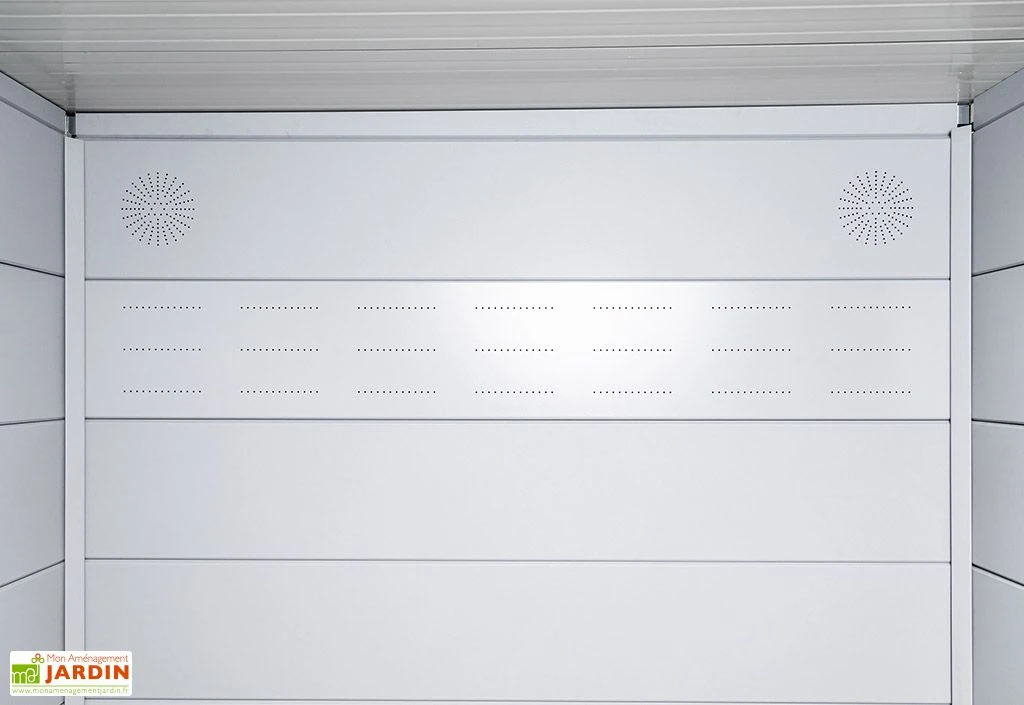 Ces cloisons en acier permettent de mieux isoler l’intérieur de votre remise de jardin tout en contribuant à son esthétique grâce à des finitions plus soignées. Elles sont spécialement conçues pour l’abri de jardin Eleganto Plus de 11,6 m² de la marque Telluria.