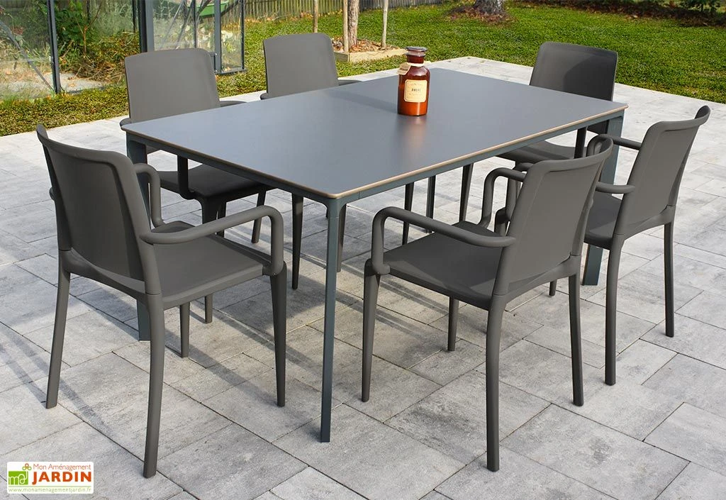 - Combinaison 2 : Table gris anthracite avec 6 fauteuils gris anthracite