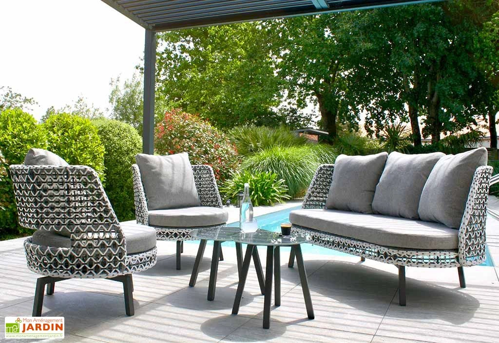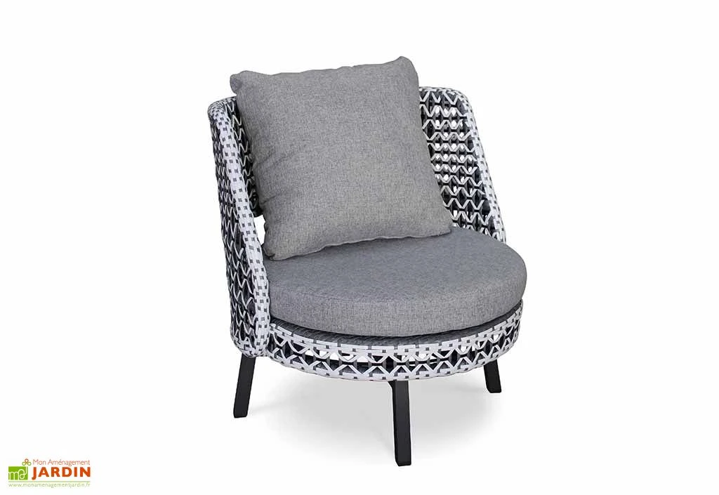 Idéal pour aménager un jardin ou une terrasse, ce salon de jardin bas arbore un design élégant, tout en courbes, constituant ainsi un élément de déco extérieure à part entière. Le canapé et les fauteuils disposent en effet d’un revêtement en résine tressée bicolore (taupe et écru) et sont complétés par d’épais coussins déhoussables de couleur grise qui, en plus de contribuer à l’esthétique de l’ensemble, vous offriront des conditions d’assise très confortables.