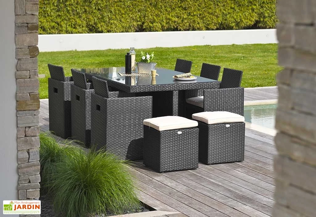 Salon De Jardin En Résine Tressée Encastrable : 11 Pièces, 2 Coloris