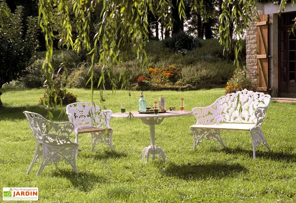 Salon De Jardin Fonte D’Aluminium Et Bois Fougère