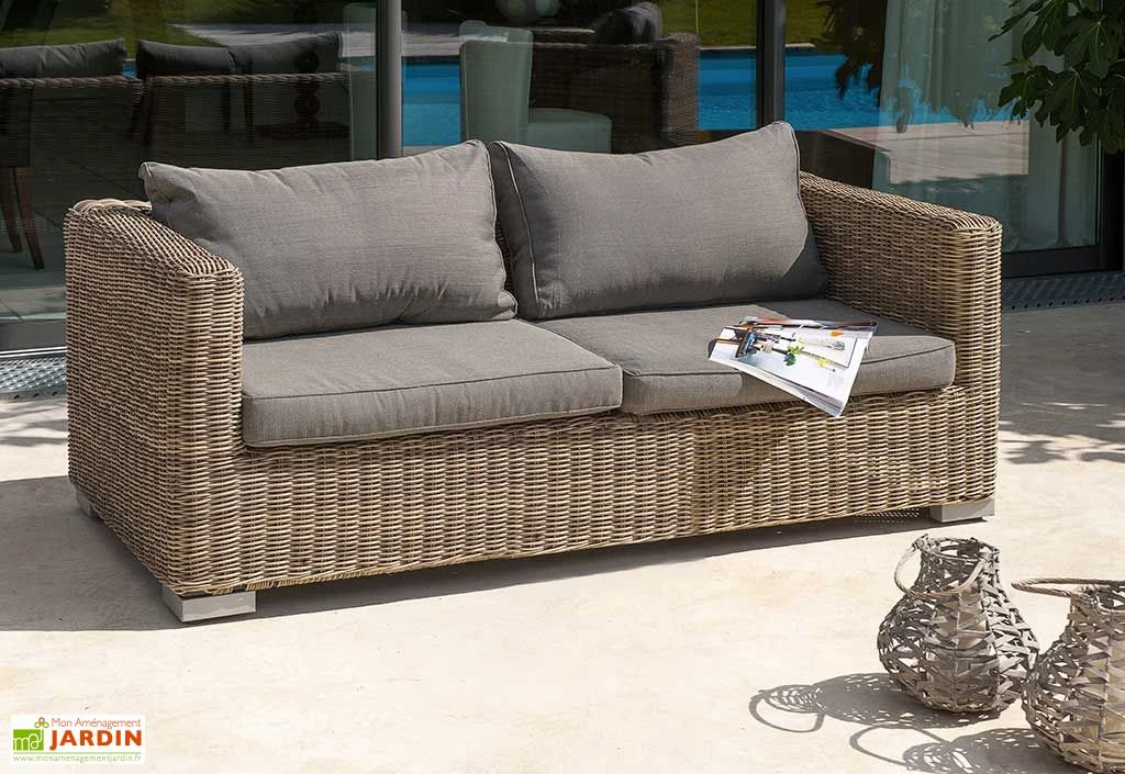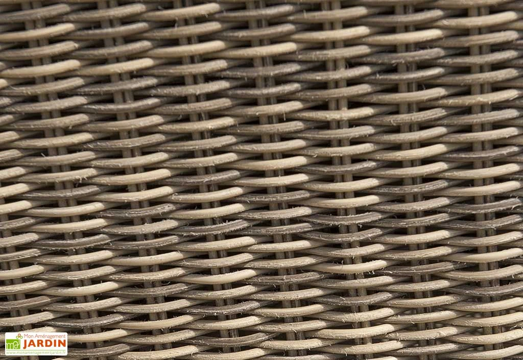 Le salon de jardin de chez Paris Garden est composé d’une banquette, de deux fauteuils et d’une table basse. L’armature est en aluminium recouvert de résine tressée couleur miel. Le plateau de la table est en verre de 5 mm d’épaisseur. Les fauteuils et le canapé disposent de coussins déhoussables en polyester avec un intérieur en mousse d’une épaisseur de 21 cm. Le salon de jardin ne demande aucun entretien. Il ne craint pas la moisissure ni la corrosion.