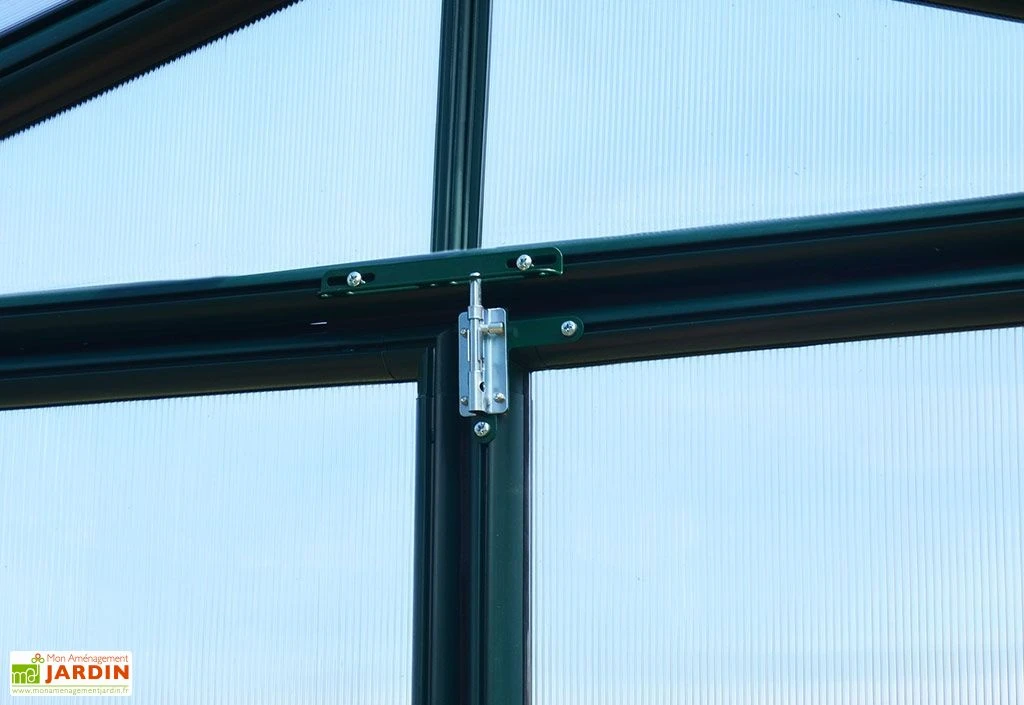 La serre de jardin dispose d’une grande double porte de 119 cm de largeur pour 165 cm de hauteur. Elle est montée sur charnières et permet d’entrer facilement avec des objets volumineux. Elle permet également de faciliter l’aération à l’intérieur de la serre. Livrée en kit, le montage est facile grâce à un système de profils uniformes et de connecteurs à emboiter. La garantie est de 7 ans.