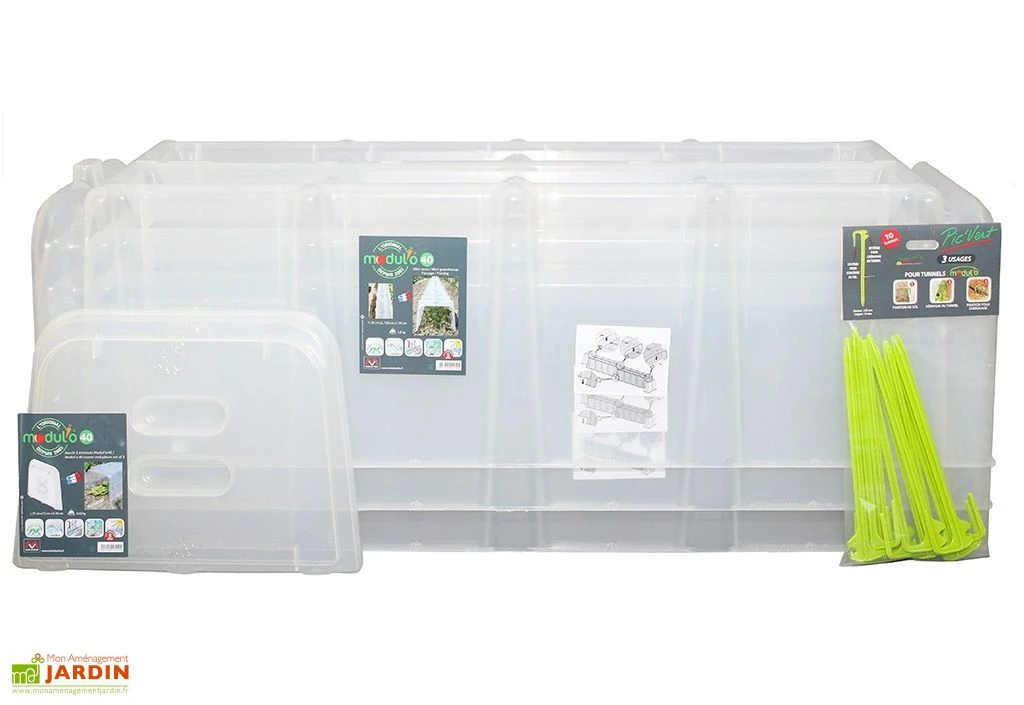 La serre de jardin Tunnel de Forçage Modulo 40 de chez Modul’o en polypropylène translucide, permet d’aider au forçage de tous types de plantations. Elle est composée de :
