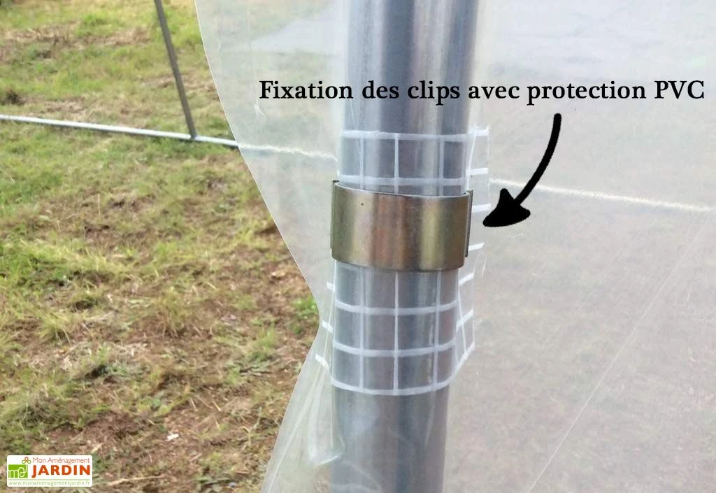 La serre tunnel est recouverte d’une bâche en polyéthylène translucide de 200 microns d’épaisseur. La bâche, non armée, est traitée contre les UV. Elle dispose d’ourlets et d’une corde qui assure une tension parfaite. Une soudure permet de renforcer la sortie de la corde à chaque ourlet. La bâche est marquée pour permettre de la positionner facilement au centre de l’armature.