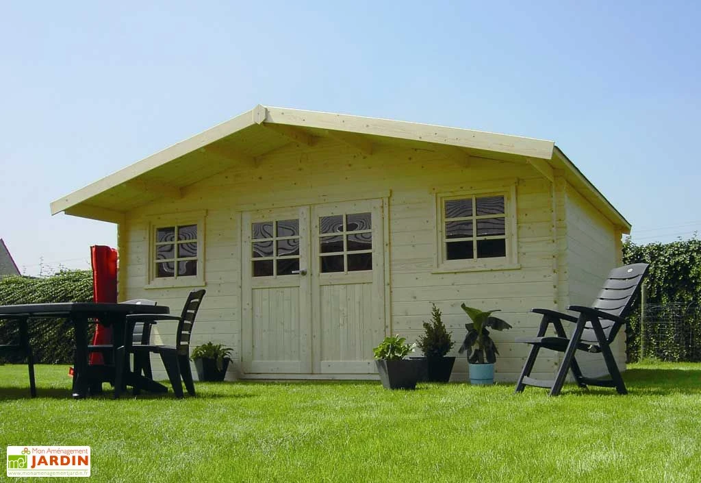 L’abri est en bois naturel non traité ou avec un traitement autoclave classe IV (le délai est de 2 à 4 semaines supplémentaires pour la version traitée). Il est non peint, la surface à peindre est de 44,2 m². L’abri peut supporter une charge de neige de 75 kg/m² (la charge permanente supportée par l’abri étant de 30 kg/m², la pose de tuiles n’est pas possible car une tuile représente 40 kg/m².).