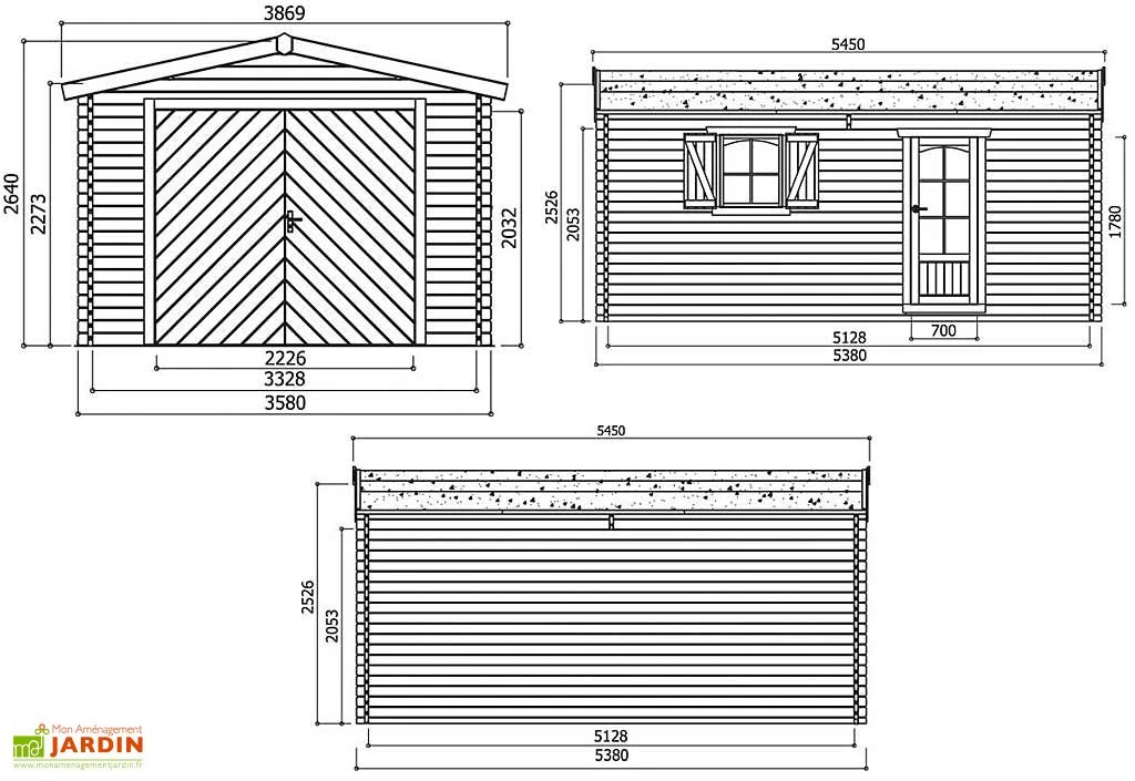 La surface à peindre est de 45,2 m². Les dimensions du garage sont : 358 x 538 x 264 cm (l,l,h) pour une surface extérieure au sol de : 19,26 m². La surface intérieure est de : 17,07 m² soit 512 x 332 cm (l,l) et la surface hors tout est de : 21,09 m². L’inclinaison du toit est de 12°, il est recouvert d’une toile bitumée sur laquelle vous pourrez, si vous le souhaitez, poser des bardeaux bitumés (shingles). Ce garage nécessite neuf lots de shingles pour recouvrir l’entièreté du toit. Vous les trouverez dans votre rubrique accessoires (sous le visuel).