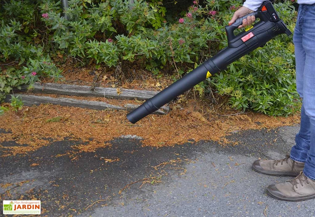 Ce souffleur à feuilles sans fil de la marque Elem Garden offre une grande liberté de mouvement et est très facile d’utilisation. Sa batterie lithium de 2000 mAh (chargeur inclus) et sa puissance de 20 V vous permettent de travailler jusqu’à 45 minutes en totale autonomie. Il possède un débit d’air de 8 m³ par minute et une vitesse d’air maximale de 150 km/h. Son poids de 1,4 kg est idéal pour ne pas vous fatiguer.
