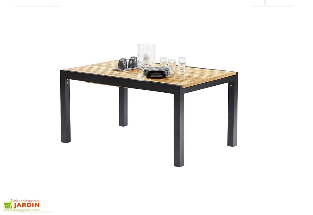 Cette table de jardin peut accueillir 6 à 10 personnes. Sa structure en aluminium et son plateau en teck offrent un design tendance et élégant. Elle inclue également une rallonge coulissante qui s s’installe et se range facilement grâce à son système de guidage précis. Cela permet d’obtenir de véritables place supplémentaires confortables en quelques gestes.