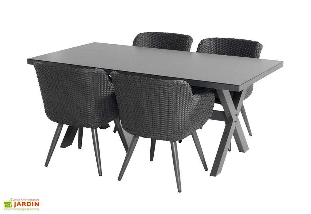 La table de jardin Santa Cruz de chez Hartman affiche des dimensions lui permettant d’accueillir confortablement quatre personnes. Elle est en effet dotée d’un plateau en verre céramique de 100 cm de large sur 180 cm de long à la fois robuste et facile d’entretien.