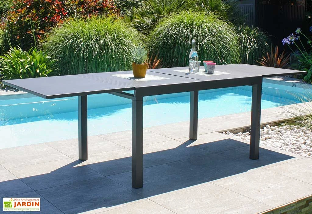La table de jardin extensible Gaston de chez City Garden intègre une rallonge qui lui permet de passer de 135 à 270 cm de long. Elle pourra ainsi accueillir confortablement jusqu’à dix personnes, à l’occasion d’un repas de famille par exemple. Notez que cette table d’extérieur au design moderne vous est proposée dans une élégante finition anthracite afin de faciliter son intégration dans votre jardin.