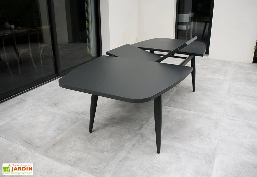 La table de jardin à rallonge Pilat de chez Paris Garden est entièrement fabriquée en aluminium couleur gris anthracite. Parfaitement adapté pour l’extérieur, ce matériau possède l’avantage de ne craindre ni la rouille, ni les intempéries, et ce sans exiger d’entretien ou de traitement particulier.