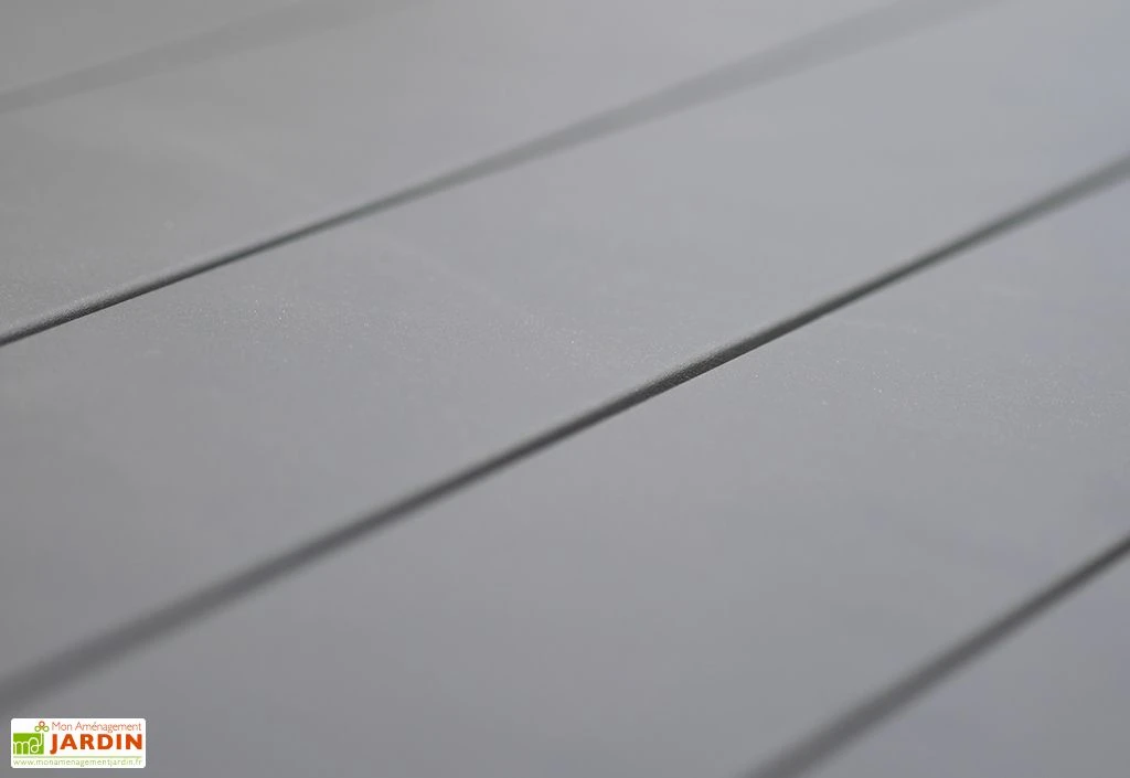 La table de jardin de DCB garden est entièrement en aluminium gris anthracite. Elle mesure 240 cm de longueur, 100 cm de largeur et 77 cm de hauteur. Elle est Ă©quipĂ©e d’une rallonge lui permettant de passer de 240 cm Ă 300 cm et recevoir jusqu’Ă 12 personnes autour de la table. La table pèse 44 kg. L’aluminium est un matĂ©riau qui ne demande aucun entretien puisqu’il ne rouille pas et ne pourrit pas. Attention, les fauteuils ne sont pas inclus, vous pourrez les retrouver dans la rubrique « Accessoires » de cette page. La garantie est de deux ans.