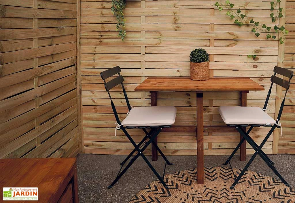 Parfaite pour les petits espaces extérieurs, cette table de la gamme Adapt de chez Jardipolys dispose d’un pied et d’un plateau rabattables vous permettant de la plier lorsque vous ne l’utilisez pas. Son système de rangement permettra d’optimiser au maximum votre espace. La table de jardin en bois peut accueillir jusqu’à deux personnes.