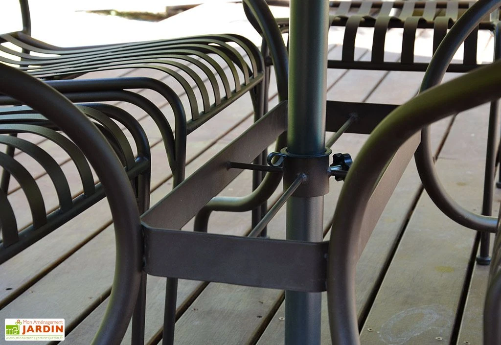 La table de jardin Mosaïque de chez Givex possède un plateau rectangulaire de 160 x 90 cm avec trou central pour parasol. Ce plateau, esthétique et facile à nettoyer, offre suffisamment d’espace pour accueillir confortablement jusqu’à six personnes.