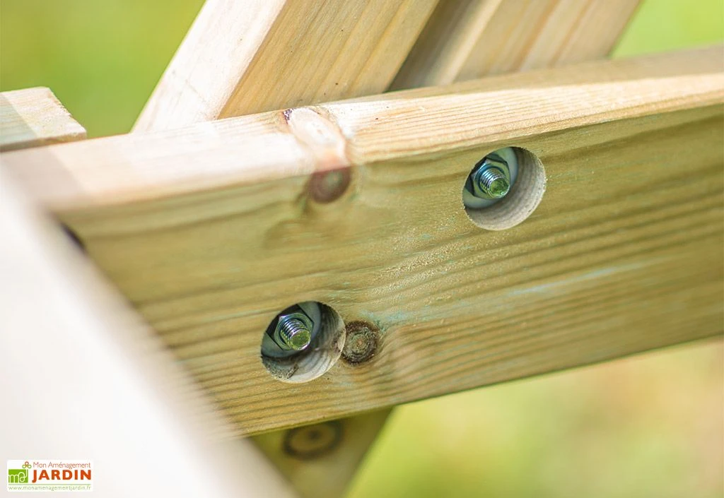 Cette table de pique-nique en bois est livrée en kit avec une notice détaillée et une vidéo de montage, offrant un assemblage simple et rapide. Elle est garantie 2 ans.