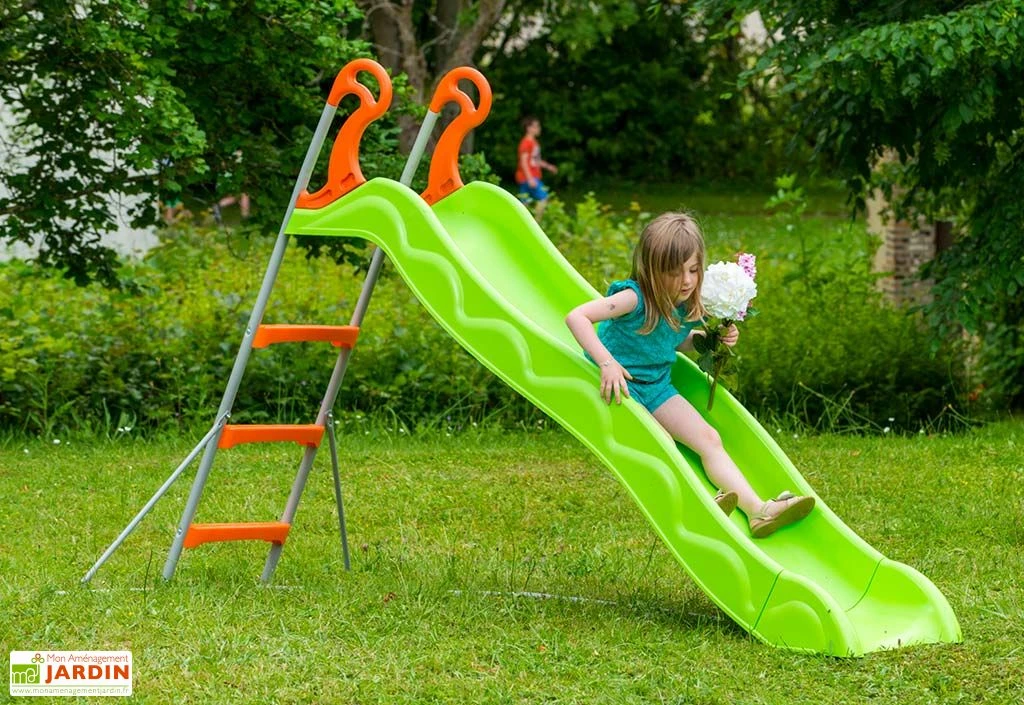 Pensé pour demeurer en extérieur pendant de longues périodes, ce toboggan pour enfant est conçu pour résister aux intempéries ainsi qu’à la décoloration causée par les UV. Le plastique de sa glissière s’est donc vu traité contre ces rayons à l’aide de stabilisateurs afin de conserver tout son éclat au fil des années. Ce toboggan étant livré en kit, il devra être monté par vos soins.