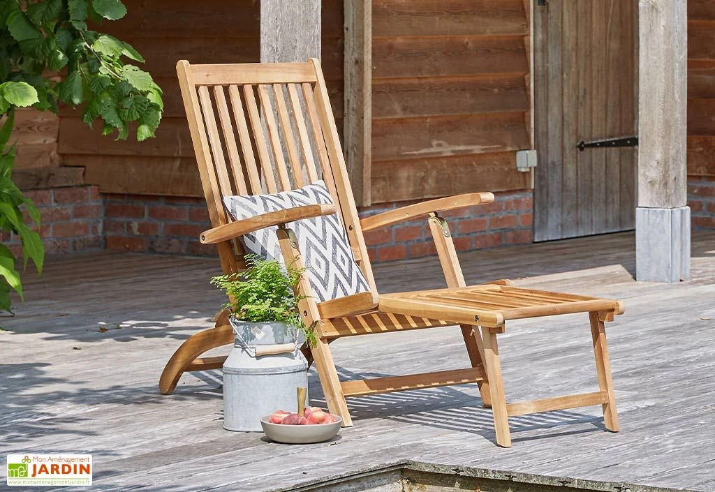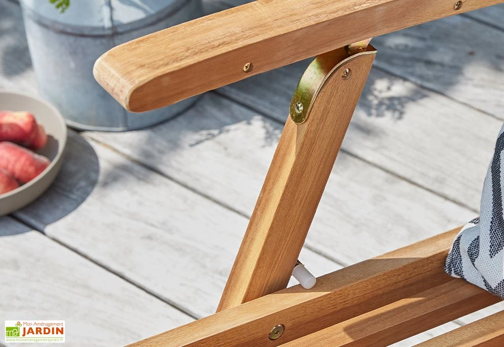 Le transat de chez Wilsa est idéal pour profiter du soleil dès le retour des beaux jours. Il est entièrement fabriqué en bois d’acacia certifié FSC, c’est-à-dire que le bois provient de forêts gérées dans le respect de l’environnement. Afin d’éviter que le bois ne grise dans le temps, il est conseillé de l’huiler une fois par an.